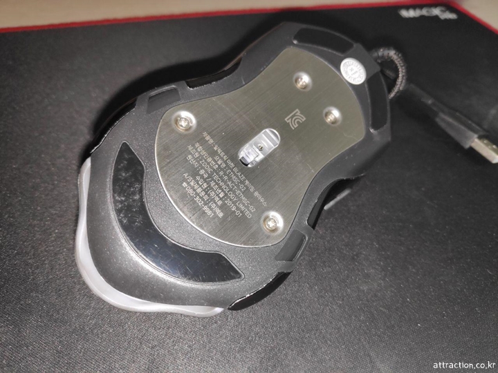 마우스가 좀 손에서 벗어나려한다는 느낌을 받으면서 생각이 바뀌게 됐는데 현재는 무게추까지 제거한 상태인데도 불구하고 마우스가 잡히는 엄지와 약지 그리고 새끼 손가락에 닿는 부분이 크롬부분이라 마우스가 손에서 벗어나려 한다는 건 여전했다. 이 현상을 막기위한 별다른 방법이 없고 임시적으로 사용하는 마우스로 취급하기에 그냥 사용하고는 있는데 만족감은 사용할 수록 낮아지는 것 같다.