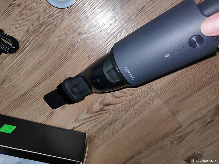 별다른 충전없이 클린플라이를 작동시켜봤는데 LED 인디게이터 3칸 중 2개의 불이 들어왔다. 어떤 부분들은 소음이 상당하고 소음만큼 흡입력이 나오지 않는다고 했는데 방안 이곳저곳을 누빈 결과 딱히 먼가 부족하다는 생각은 들지 않았다. 풀 충전 후 사용했을 때 먼가 모터가 더 큰 힘을 내는 것 같은 기분이 들었다. 동시에 원룸 하나 커버하기엔 안성맞춤이라는 생각도 들었다.