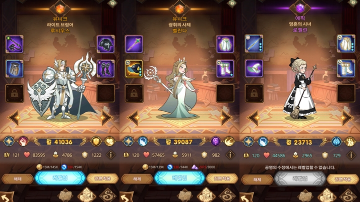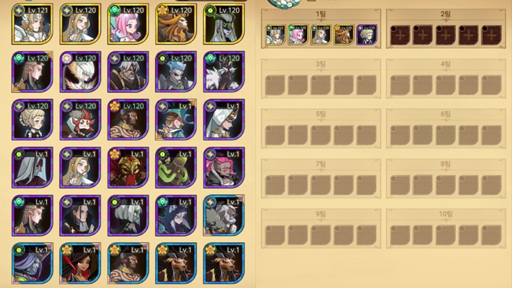필자의 경우 정말 우연찮게도 인간 "레오프론"이 잘 나와주고 유니크로 만들고 있는데 루시우스를 필두로 벨린다, 로젤린을 기본 구성으로 잡고 부루투스와 타시를 첨가해 운영하고 있다. 현재 캠페인은 9-30까지 도달했으며 팀내 유니크 영웅들은 120레벨까지 도달해 놓은 상황이다.