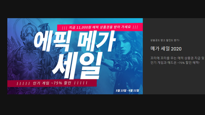 전 세계적으로 유명한 GTA 시리즈 국내에서도 다양한 패러디 물을 양성하며 굉장한 인기를 끌었던 메가 히트 게임인데 5월 21일까지 무료로 다운로드할 수 있다. 그 외 메가 세일기간 매주 금요일 무료 게임이 풀릴예정이며 할인 쿠폰도 제공해 에픽 게임즈 스토어의 다양한 게임을 이용할 수 있다고 한다.