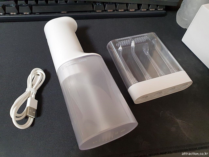 샤오미 미지아 워터픽의 구성은 본체, 노즐, C타입 케이블이 들어 있었다.