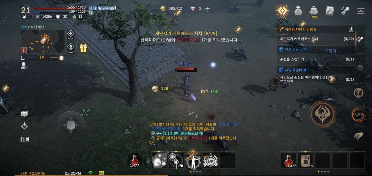 게임을 풀어가는 방식은 기존 퀘스트를 진행하면서 갈때까지 키우다가 앵벌하는 형태로 같아 보였다. 몬스터의 이름들은 비슷한 녀석들이 꽤 많이 보였다. 겨우 20 레벨 넘긴 시점이지만 향수가 상당히 자극되더라는 역시나 타격감이나 피격되는 모습은 만족스러웠다.