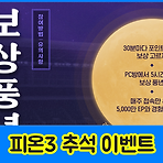 연휴는 9일까지! 하지만 피파온라인3 이벤트는 11일까지! 역대급 최장 명절 연휴가 시작된다고 떠들썩 했었는데 이제 쉬는 날이 하루 정도 맊에 남지 않았다. 피파온라인3에서도 이번 한가위를 더욱 풍성하게 보낼 수 있게 황금 추석 보상 풍년 이벤트를 진행하고 있는데 2017년 10월 11일 23:59까지 진행되는 터라 아직은 참여할 수 있어 정리해 봤다. 1. 접속만 해도, 30분마다 포인트 풍년! 하루 최대 집에서는 3포인트 PC방에서는 8포인트를 모을 수 있다. 중요한게 집과 PC방의 접속시간은 합산되지 않고 누적되는 시스템이라는 것. 위 보상 아이템 중 다들 10포인트를 모아 UL 등급까지 얻을 수 있는 추석 프리미엄 상자를 노릴 것으로 생각된다. 2. PC방에서는 5시간마다 풍년! 최소 5시간씩 최..